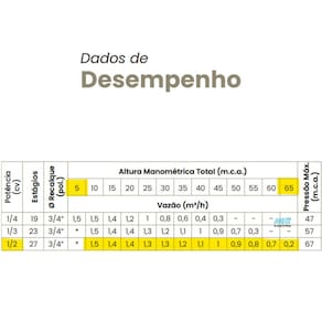 Motobomba Submersa 2" Lepono ou Claw 1/2 Hp 2 Fios 220v ESPECIFICAÇÕES: • VAZÃO Máxima 1.300 L/H. • POTÊNCIAS: 1/2 HP monofásico. • Altura máxima de 55 MCA ( Tabela de altura x vazão na foto do anuncio ). • DIÂMETRO: 2'' (Para Poço com diâmetro acima de 60 mm). • Bocal de recalque com rosca 3/4" polegada. • Controlador Interno ( Não utiliza painel/Box ). APLICAÇÕES: • Captação de água potável em poços com diâmetro mínimo de 2" • Abastecimento de residências, chácaras, sítios e indústrias • Rebaixamento do lençol freático CARACTERISTICAS DO MOTOR: - Enrolamento em cobre - Protetor térmico - Grau de proteção: IP68 - Classe de isolação: B - Lubrificante do motor: Óleo dielétrico isolante (utilizado nos ramos alimentícios e farmacêuticos) - Selo mecânico em grafite cerâmica buna. ALTURA MANOMETRICA X VAZÃO: - 10 M.C.A - 1.300 L/H - 15 M.C.A - 1.200 L/H - 20 M.C.A - 1.100 L/H - 25 M.C.A - 1.000 L/H - 30 M.C.A - 900 L/H - 35 M.C.A - 800 L/H - 40 M.C.A - 600 L/H - 45 M.C.A - 500 L/H - 50 M.C.A - 100 L/H - Corpo da bomba em aço inox AISI 304 - Temperatura máxima do líquido: 35 °C - Bocal de recalque em bronze e intermediário do motor em aço inox AISI 304 - Rotores flutuantes - ph do líquido: 6 - 8 - Capacidade máxima de areia na água: 40 gr/m³ - Comprimento do cabo de energia: 1,5 metros - Motobomba constituida em aço inox, bronze e termoplástico - Suporta flutuação de tensão Utilizada principalmente para a captação de água em poços artesianos de água limpa e isenta de sólidos em suspensão. Indicada para o abastecimento doméstico e pequenos prédios. Utilizada em sistema de irrigação de pequeno porte. A motobomba multiestágio permite atingir grandes pressões sem sofrer perdas consideráveis na vazão. A Motobomba Submersa Dongyin 2" é perfeita para atender suas necessidades de captação de água de forma eficiente e confiável. Com sua capacidade de trabalhar em poços artesianos de água limpa e livre de impurezas, ela é ideal para abastecer residências e pequenos edifícios. Além disso, essa motobomba é uma excelente escolha para sistemas de irrigação de pequeno porte, garantindo alta pressão sem comprometer o fluxo de água. Não perca tempo e adquira agora a Motobomba Submersa Lepono 2", a solução completa para suas demandas de água.