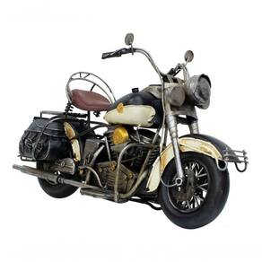 Enfeite decorativo em forma de uma motocicleta branca com 18 x 35 x 12 cm de dimensão, detalhes e cores muito realista. Material: metal; Atenção: este produto tem apenas função decorativa, não é um brinquedo e nem uma motocicleta de verdade!