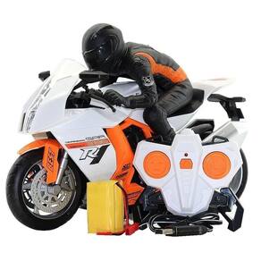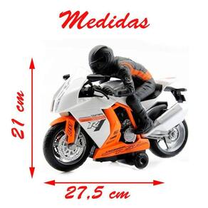Crianças e adultos vão se divertir de montão com essa linda moto de controle remoto Com bateria recarregável, ela conta ainda com luz, som de aceleração e consegue fazer rotação em até 360, além de um chassi com design único que está além do futuro