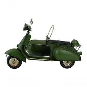 Enfeite decorativo em forma de uma motocicleta com sidecar de 17,5 x 27 x 20 cm de dimensão, detalhes e cores muito realista. Material: metal; Atenção: este produto tem apenas função decorativa, não é um brinquedo e nem uma motocicleta de verdade!