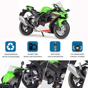 Tamanho do modelo da motocicleta Ninja ZX-10R 2021 em escala 1/12: cerca de 17,6 cm x 7,5 cm x 10 cm fabricada de acordo com o tamanho autêntico da motocicleta, detalhes requintados, tela real, mais decorativa e jogável - [Bela estrutura]: as rodas podem avançar e o guidão pode girar para a esquerda e para a direita. - [Tamanho proporcional]: escala 1/12 2021 Tamanho do modelo da motocicleta Ninja ZX-10R: cerca de 17,6 cm x 7,5 cm x 10 cm fabricada de acordo com o tamanho autêntico da motocicleta, detalhes requintados, display real, mais decorativo e jogável - [Material de qualidade]: O modelo da motocicleta é composto por liga de zinco e peças plásticas. O material do pneu é feito de borracha de alta qualidade, proporcionando uma experiência de palco mais realista. - [Presente] O modelo de motocicleta é muito adequado para os amantes de motocicletas colecionarem, decorarem, como presentes de aniversário e itens colecionáveis para pais, parentes e amigos, namorados, etc. - [Serviço pós-venda íntimo] Se você tiver alguma dúvida após receber a mercadoria, . Forneceremos um atendimento ao cliente de qualidade. Responderemos dentro de 24 horas após o recebimento do e-mail. Adicionar compra de produto Veja mais detalhes do produto