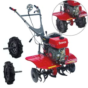 Aplicação Indicado para revolver o solo de pequenas propriedades, como em hortas e camas de aviários. CÓDIGO: Partida manual 90312723 TIPO DE COMBUSTÍVEL: Gasolina DIÂMETRO X CURSO: 68 mm x 54 mm CILINDRADA: 196 cm3 TAXA DE COMPRESSÃO: 8,5:1 POTÊNCIA MÁXIMA: 6,5 cv a 3600 rpm TORQUE MÁXIMO: 1,35 kgfm a 2500 rpm IGNIÇÃO: Eletrônica LARGURA DE CORT: 800 mm com disco Profundidade de 150 a 300 mm TRANSMISSÃO: Frente / neutro / ré PESO: 85 kg TRAÇÃO/MARCHAS: Com pneus / enxadas rotativas