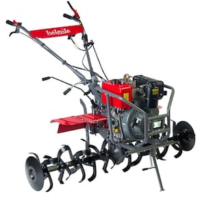 Especificações Técnicas: Sistema de Partida: Elétrica - 12V Tipo de Combustível: Diesel Potência máxima: 10,6 cv @3600 rpm Largura de corte: 1500 mm Transmissão: 4 velocidades a frente / 2 velocidades em ré Tração / Marchas: Pneus / Enxadas rotativas