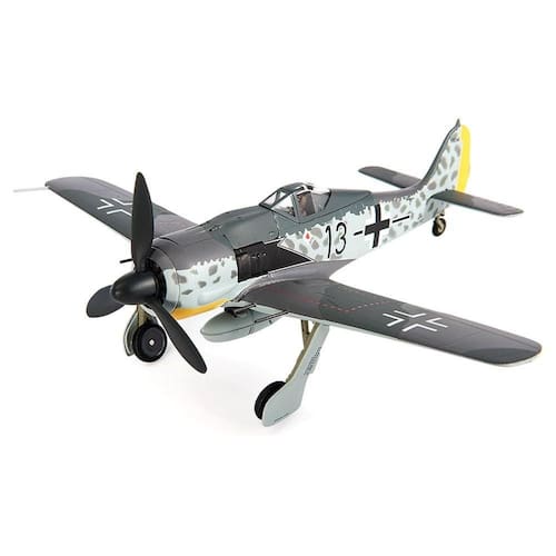 DESTAQUES HISTÓRICOS: Operado pelo estimado JG26, conhecido como The Abbeville Boys, este modelo homenageia os pilotos habilidosos que voaram em missões críticas na França em 1945. O FW 190A-8 era renomado por sua velocidade excepcional, manobrabilidade e poder de fogo.