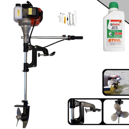 Motor de Popa Import Way à Gasolina 52cc 2,5HP Para Botes e Barcos + Óleo Castrol Stihl 500ml