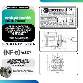 Motor Elétric Mono 5Cv Compressor Lavadora Forrageira Serra