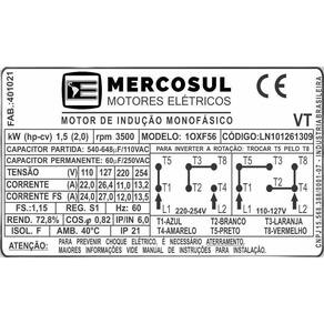 Motor da marca mercosul eberle. Primeira fábrica de motores elétricos, com alta qualidade, confiabilidade e eficiência no brasil. Este motor atende as mais variadas aplicações onde roda tanto em sentido horário como anti-horário. Acompanha polia de alumínio de 2 canais tipo a Algumas de suas aplicações mais utilizadas: Furadeiras de colunas; Bombas; Moto-esmeris; Moedor/ralador; Serra de bancada; Serra fita; Máquinas em geral. Características gerais: Potência: 2cv; 2 pólos - alta rotação - 3500rpm; Grau de proteção: conforme abnt nbr-6146; Freqência: 60hz; Grau de proteção: ip21; Carcaça: 56 nema mg1; Tensão: 110-127/220-254 v; Classe de isolação: f 155 c ; Fabricante: mercosul motores; Tecnologia eberle. : 24 meses com direto com o vendedor. Ean: 7793838633528