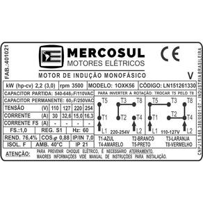 Motor da marca mercosul eberle. Primeira fábrica de motores elétricos, com alta qualidade, confiabilidade e eficiência no brasil. Motor com duplo capacitor, sendo um de partida e outro permanente, garantindo maior força e eficiência do motor. Algumas de suas aplicações mais utilizadas: Serra circular de bancada Furadeiras de colunas Exaustores Bombas Moto-esmeris Máquinas em geral. Motor monofásico 3cv 2 pólos alta rotação. Características gerais: Potência: 3cv; 2 pólos, alta rotação; Motores com dois capacitores; Grau de proteção: ip21; Carcaça: 56 nema mg1; Tensão: 127/220 ou 110-127/220-254 v; Frequência: 60 hz; Classe de isolação: f 155 c ; Fabricante: mercosul motores; Tecnologia eberle. : 24 meses com direto com o vendedor. Marca: Não Informado Ean: 7793838614046