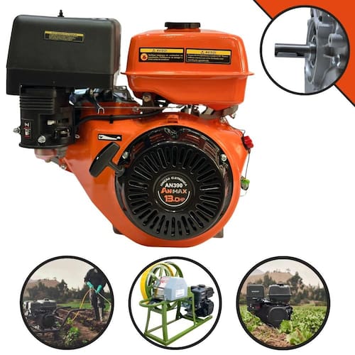 Os motores estacionários ANMAX são equipamentos robustos que proporcionam grande economia e alto desempenho. Podem ser acoplados em diversos equipamentos como microtratores, motobombas, geradores, rabeta para barcos, moenda de cana e outros equipamentos. Produto de alta qualidade, estrutura compacta, design leve, fácil de usar e durável. Possui motor de 13HP e 389cc à gasolina, com sistema de partida manual.