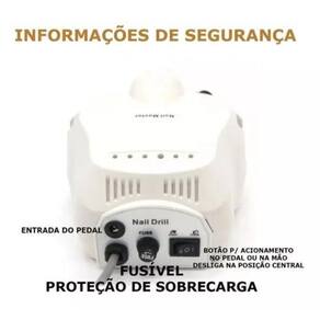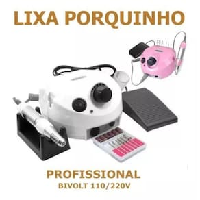 O kit contém: 1 - cabine sun 5 48w 24 leds 1 - lixa motor porquinho para unhas profissional bivolt Sun 5 ---------------------------------- Ele vai começar a funcionar automaticamente se você colocar suas mãos em esta máquina sem pressionar o botão time. 3 tipos de ajuste de tempo: de 10 segundos, 30 segundos e 60 segundos para o tempo escolhendo e 120 segundos para o tempo máximo de trabalho sem pressionar o botão time. - modo de baixo calor: - 99 segundo para o modo de baixo calor, proteger sua pele mãos. - contagem regressiva e cronometragem fucntion: ele vai contar para baixo se você pressionar o botão de ajuste de tempo. Função de cronometragem começa a se você escolher fogo baixo ou no modo automático modo de indução. Características técnicas: ------------------------------------ - 48 w de potência. - 5 s/30 s/60 s timer, rápido o secador de unhas de gel. - voltagem: bivolt - poder: 48 w - 24 leds Motor lixadeira porquinho com pedal profissional ------------------------------------------------------------------------------------------------------------------------------------------- - utilizada em polimentos de unhas em gel, acrigel, acrílica, porcelana, polygel, fibra de vidro...Debaste em geral, cutilagem e até para fins de podologia. - sua utilização promove um serviço rápido, de alta qualidade e satisfatório. - pedal opcional; - possui botão para inversão da rotação; - comporta brocas de 2,35mm de diâmetro; - baixo nível de ruído e vibração; - dispensa lubrificação; - bivolt 110v - 220v; - acompanha pedal e suporte de mesa para caneta; - não ligar sem a broca; - não necessita lubrificação; - manter uma distância da broca do motor de 0,5cm; - armazenar em local seco; - evitar quedas; -guarda-lo sem a broca. - 30 mil rpm Modo de uso: ---------------------------- - pressione o de função para hand para controle manual, o indicador acenderá. - gire o controle de velocidade para a direita para acelerar a velocidade. - quando o seletor de função é pressionado para foot, pise no pedal e a máquina começará a funcionar o pedal é opcional . - as direções de giro podem ser trocadas: fwd significa sentido horário e rev significa sentido anti-horário. - ajuste a velocidade do painel dentro de uma faixa razoável. - ajuste a peça de mão para a velocidade mais baixa antes de mudar a direção para frente / para trás. - gire o controle de velocidade no sentido anti-horário para desacelerar a lixadeira ao mínimo antes de desligar e mudar a fonte de alimentação principal para 0. - enquanto a lixadeira estiver em operação, nunca retire o plugue de 5 pinos do motor. - durante o tempo ocioso, desligue a fonte de alimentação. Tamanho do motor: ------------------------------------ Altura: 7 cm Largura: 15 cm Comprimento do fio: 1 metro e 50 centímetros Tamanho da caneta: ------------------------------------ Altura: 15 cm Circunferência: 4 cm Comprimento do fio: 1 metro e 40 centímetros Tamanho do pedal: ------------------------------------ Altura: 3 cm Largura: 10 cm Comprimento do fio: 1 metro e 40 centímetros Itens inclusos: 1 - motor porquinho 1 - caneta 1 - pedal 1 - copinho 1 - suporte 1 - conjunto lixa e brocas 6 lixas e 6 brocas 1 - cabine sun led e uv 1 - manual 1 - fonte energia bivolt Marca: Não Informado