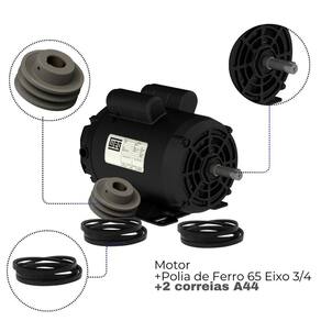 Motor Weg Bivolt para Betoneira de 400 Litros + Polia de Ferro 19mm eixo chavetado + 2 Correia A44