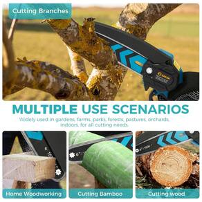Motossera Elétrica sem Fio para Poda de Galhos com 2 Baterias 20V 1500 mAh e 3 Correntes Extras, Saker, Azul