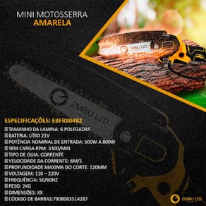 Mini Motosserra Elétrica Sem Fio EmbuLED 21V - Modelo EBFR80482