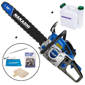 Motosserra Nakashi desenvolvida para o uso profissional, produzida com matérias primas e componentes de primeira linha que proporcionam excelente rendimento e grande resistência ao equipamento. São produzidas com materiais de altíssima resistência e grande parte do processo de montagem é executado por máquinas, o que confere amior precisão na montagem.