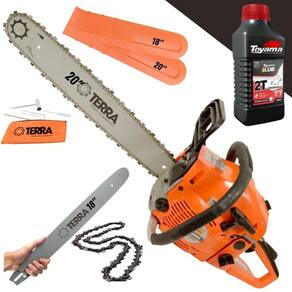 Motosserra Terra MT520 À Gasolina 2T 2,5HP 52cc Com Sabres de 18'' e Sabre de 20'' + Óleo Toyama FG50 500ml 2T