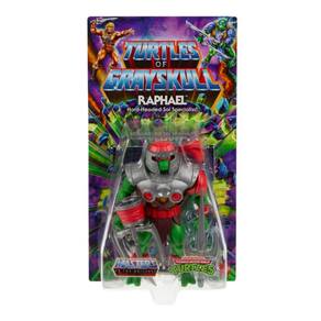 O Boneco Colecionável MOTU Turtles of Grayskull Raphael - Mattel da Mattel é uma peça única que combina dois universos, o Masters of the Universe e Teenage Mutant Ninja Turtles. Com 14 centímetros de altura e 16 pontos de articulação, permite recriar poses incríveis para os fãs das duas franquias.