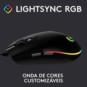 Mouse Gamer Logitech G203 LIGHTSYNC RGB Efeito de Ondas de Cores 6 Botões Programáveis e Até 8.000 DPI Preto