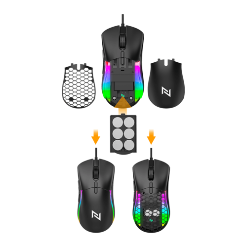 Controle Total: Ajuste do Peso do Seu Mouse para Dominar Cada Jogo! Um dos grandes destaques deste mouse é o ajuste de peso, permitindo personalizar sua experiência de jogo para atender às suas preferências pessoais. Ele vem equipado com seis peças de ferro que funcionam como contrapesos, possibilitando ajustes de acordo com sua necessidade.
