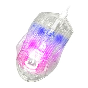 - Mouse Gamer Redragon com carcaça transparente em policarbonato permitindo a iluminação RGB brilhar sem obstáculos