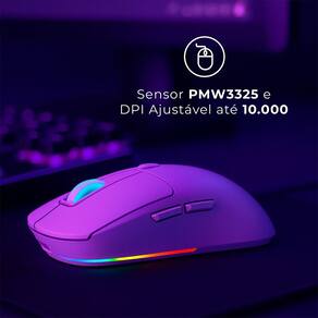 Equipado com o sensor de alto desempenho PMW3325, oferece rastreamento preciso com velocidade de ate 100 IPS e aceleracao de 20G, garantindo agilidade e resposta instantanea nos seus movimentos.
