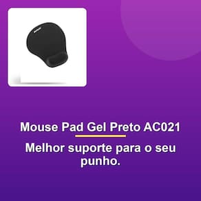 Conheça o Mouse Pad Gel Pequeno Preto AC021, o aliado do seu bem-estar e produtividade. Com um apoio em gel que proporciona maior confort ao usar o mouse, você evita lesões por esforço repetitivo (LER) e mantém o punho na altura certa para evitar problemas futuros.
