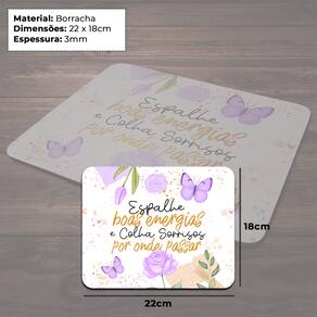 Material que garante movimentos suaves e precisos e possui base anti deslizante. Mousepad EmborrachadoMaterial: Borracha e tecido poliésterDimensões: 22 x 18cm Espessura: 3mm Imagem em alta definiçãoImagens meramente ilustrativas: As cores podem haver variações pequenas bem como o tamanho da arte em relação as fotos do anúncio.