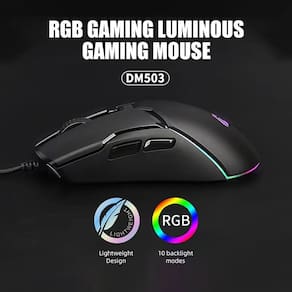 Características destacadas 1. Sensor óptico específico para jogos de 6400 DPI: este mouse para jogos funciona perfeitamente com um sensor óptico de nível competitivo para evitar qualquer clique aleatório, mouse de computador de até 6400 dpi, taxa de votação ultra-alta e tempo de resposta de apenas 0,001 segundo, fazem com que você obtenha melhores resultados em jogos de grande vantagem. Nenhum controlador é necessário, basta conectar e usar. 2. Mouse programável: O mouse para jogos para PC foi projetado com 6 botões programáveis para atribuição de macros. O software pode salvar vários arquivos de configuração e suporta scripts e atrasos com o botão esquerdo. A função de programação macro torna o mouse para jogos mais inteligente, atende a mais demandas de diferentes jogos e torna seus jogos mais emocionantes. 3. Mouse para jogos com luz de fundo RGB: o mouse para jogos com 2 modos de luz de fundo RGB pode ser alterado de acordo com suas necessidades, combinando perfeitamente com seu estilo, proporcionando uma atmosfera agradável e melhorando sua diversão de jogo. Um mouse para jogos RGB torna sua sala de jogos mais especial, especialmente à noite. 4. Mouse ergonômico para jogos com qualidade confiável: este mouse para jogos foi projetado ergonomicamente. As mãos esquerda e direita são projetadas simetricamente para atender aos diferentes hábitos de uso. As superfícies são feitas de revestimento fosco que não agride a pele, que é antiaderente e antiderrapante, com aderência estável e excelente sensação de toque. Isso garante que seus dedos se sintam mais responsivos graças aos botões de rolagem de borracha macia. Além disso, os botões esquerdo/direito embutidos se encaixam perfeitamente com seus dedos para um clique confortável. 5. Mouse preciso e sem atrasos: O mouse não só fornece uma conexão confiável, mas também um rastreamento preciso. Permite que você mova livremente o mouse para jogos até 10 m sem interrupção. Jogue ou trabalhe com mais flexibilidade. Veja menos