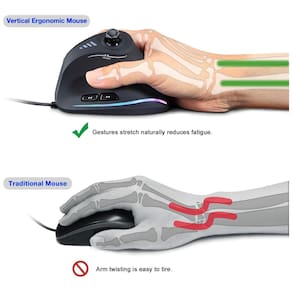 Mouse Vertical Ergonômico Este mouse vertical baseia se na ergonomia, reduzindo efetivamente a tensão do pulso do usuário e a dor muscular por uma maneira natural de aperto de mão. Um curador ideal para dor no pulso, fadiga no ombro, síndrome do túnel do carpo e tendinite. 5 Direction Rocker Um rocker integrado de 5 orientações ajuda o jogador a alcançar seu melhor desempenho em cada campanha. Neste mouse para jogos, 1 balancim equivale a 5 teclas. Controle de polegar, a realização da operação frente, traseira, esquerda, direita, pressão para baixo. Adaptado para FPS, MOBA, MMO e outros diferentes tipos de jogos. Botões programáveis A função de definição de macro inteligente permite que os usuários personalizem todos os 11 botões de acordo com diferentes individualidades. Através do software anexado consulte o manual, construa um mouse de jogo profissional para você. Os dados programáveis serão salvos no mouse, se conectá lo a um computador, não haverá problemas de reinicialização. Configuração alta 5 níveis de DPI variando a velocidade de 1500 a 10000 sensor. Este mouse para jogos também adaptou o chip fotoelétrico PMW3325, com velocidade de movimento de 100IPS, aceleração de 20G, frequência de varredura de 5000FPS para alcançar sua jogabilidade superior. Luz LED RGB predefinida O cinto de lâmpada de mudança de cor RGB é definido em ambos os lados. Personalize a luz RGB por efeitos neon, Marquee ou Streamer total de 5 efeitos de iluminação para aumentar a atmosfera do jogo Marca: Não Informado