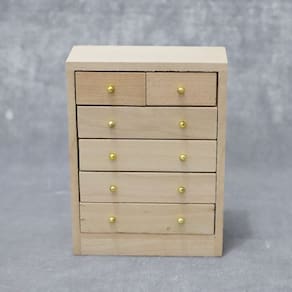 Dimensões: 7,9 cm de comprimento x 3,4 cm de largura x 10,4 cm de altura Material: madeira Peso: 112 Baú em miniatura realista: design de menino alto de 6 gavetas com superfície lisa de madeira inacabada, perfeito para pintura, coloração ou personalização DIY para combinar com qualquer estilo de quarto de casa de bonecas. Construção durável em madeira: feita de madeira maciça com acabamento fino, estrutura estável e botões detalhados para uma experiência realista de móveis em miniatura. Ajuste perfeito para casa de bonecas: projetado para miniquartos em escala 1:12, ideal como cômoda ou armário de armazenamento para quartos, creches ou salas de estar em sua cena de casa de bonecas. Educacional e criativo: incentiva brincadeiras de fingir, contar histórias e projetos de artesanato DIY, ao mesmo tempo em que melhora a habilidade prática e a criatividade estética de crianças e colecionadores. Aviso de segurança: para brinquedos que não sejam infantis, tenha cuidado para evitar ingestão acidental ou ferimentos em crianças; este produto é apenas um modelo de brinquedo, não para pessoas reais; sugestões de adaptação: casinha e boneca em escala 1/12.
