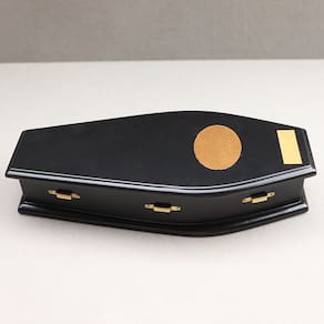 Tamanho: 17,5 x 7,8 x 3,7 cm Material: madeira compensada Peso: 170 g Design gótico exclusivo: modelo de caixão preto em miniatura com acabamento elegante e hardware detalhado, perfeito para adicionar um toque assustador às cenas de casa de bonecas ou de Halloween. Material de alta qualidade: feito de madeira compensada durável com detalhes realistas, com detalhes dourados nos fechos para uma aparência autêntica. Perfeito para casas de bonecas na escala 1:12: projetado para casas de bonecas na escala 1:12, este caixão é ideal para casas mal-assombradas ou com temas góticos em coleções em miniatura. Aviso importante: Este produto é um modelo de brinquedo e não é para uso na vida real. Brinquedo não infantil — evite riscos de asfixia ou ferimentos. RPG criativo: ótimo para brincadeiras imaginativas, perfeito para aprimorar as coleções de móveis de casas de bonecas de Halloween, góticas ou assombradas.