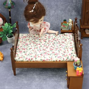 Tamanho: comprimento 16,6 cm largura 12,9 cm altura 9,8 cm Material: tecido de madeira Peso: 195 g Design elegante: cama de casal de madeira em miniatura com roupa de cama com estampa floral e cabeceira esculpida, adicionando um toque vintage a qualquer quarto de casa de bonecas. Artesanato de alta qualidade: feito de madeira durável com entalhes intrincados e roupas de cama de tecido macio, oferecendo uma adição realista e charmosa às coleções de móveis em miniatura. Perfeito para a escala 1:12: ideal para casas de bonecas, minicasas e configurações de teatro em escala 1:12, aprimorando cenas de quarto e ambientes de fingimento. Nota de segurança: Brinquedo não infantil — evite possíveis riscos de asfixia ou ferimentos, mantendo-o longe do alcance de crianças pequenas. Este é um modelo de brinquedo, não destinado ao uso na vida real. RPG imaginativo: incentiva a narrativa criativa e o fingimento, tornando-o um acessório ideal para atividades infantis em casas de bonecas e cenários de RPG.