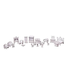 Móveis para casinhas debonecas escala polly brancos com 21 peças