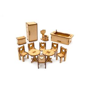 Móveis para casinhas de bonecas compatível com bonecs de até 10 cm de altura mdf natural com 29 peças
