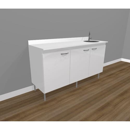 - Disposição: módulo porta/módulo porta/módulo pia;