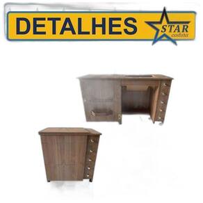 Produto direto da fábrica Gabinete luxo com gaveteiro para máquina de costura doméstica O gaveteiro é o nosso modelo mais completo, com 5 gavetas, é um móvel muito bonito e espaçoso. Para quem quer deixar todas suas ferramentas, linhas, agulhas, tesouras, fita métrica, enfim, tudo bem organizado em um único local, o gaveteiro seria o móvel mais indicado. Esse móvel serve apenas para a máquina especificada no título e fotos desse anúncio. Material: 100% mdf de 15mm de espessura. Mesmo material de móveis planejados de alto padrão. Cor: exatamente igual das fotos deste anúncio. Medidas: Largura: 43cm Altura: 77cm Comprimento móvel fechado: 69cm / comprimento móvel aberto: 123cm Abertura da máquina: conforme modelo da máquina descrita nesse anúncio. Largura interna espaço para as pernas : 49,5cm Itens inclusos: - gaveteiro luxo completo o produto vai desmontado ; - manual de montagem passo a passo detalhado; - kit de rodinhas com trava; - porta cone de linha exclusivo - star costura; - mini catálogo - star costura - com cupom de desconto para próxima compra. Marca: Star Costura