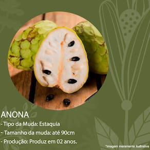 Características Gerais do Produto: • Plantio: A plantação da anoneira deverá ser executada preferencialmente entre o mês de março e Maio. • Frutificação: Geralmente no ?m do verão • Região: Brasil • Temporada de Crescimento: De Fevereiro a Setembro • Nome da espécie: Frutífera • Tipo de Planta: Árvore • Quantidade de Plantas: 1 • Altura: 90cm • Ambientes: Exterior • Inclui Vaso para Planta: Não • É apta para exposição solar: Sim • Idade: 2anos • Condição do Item: Novo • É kit: Não • Altura (cm): 90.00