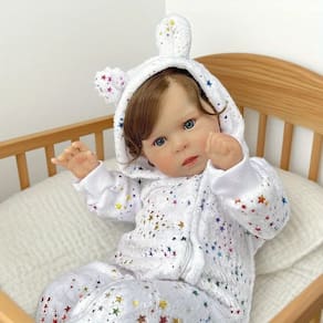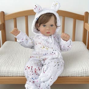 Tamaño: Aproximadamente 50 cm (20 pulgadas). Estructura: La cabeza y las extremidades completas están hechas de vinilo suave, el cuerpo es de tela. Nota: La muñeca con cuerpo de tela no se puede bañar en agua. Cabello: Cabello enraizado a mano. Incluye: - Muñeca terminada * 1 - Set de ropa * 1 - Chupete magnético * 1 - Biberón * 1 - Certificado de nacimiento * 1 Aplicación: Regalo de cumpleaños, regalo de Navidad, compañera de juegos para niños, compañía para abuelos y colección de muñecas. Edad recomendada: A partir de 3 años. Características: Para lograr un efecto más realista en la muñeca se utilizan materiales de pintura importados y avanzados, pintando la piel en 3D para un acabado más delicado. - Compañera emocional: Más que una muñeca, es una fuente de confort y alegría. Sus rasgos realistas y expresión serena inspiran instintos de cuidado, ofreciendo apoyo emocional para niños, personas mayores o quien busque alivio del estrés a través del juego de cuidado. - Regalo perfecto para múltiples ocasiones: Un regalo inolvidable para cumpleaños, Navidad o juegos de rol. Ideal para niñas pequeñas, coleccionistas de muñecas, fotógrafos o abuelos. Incluso es compatible con ropa y accesorios de recién nacido, como pañales y cochecitos, para un juego de simulación más realista. - Experiencia inmersiva de bebé real: Desde su cuerpo con peso para abrazar hasta la posibilidad de "vestirla" con ropa de bebé real, cada detalle fomenta la autenticidad. A los niños les encanta llevarla a todas partes y los coleccionistas la valoran como una obra maestra para exhibir. Incluye un certificado de nacimiento en blanco para personalizar. - Detalles realistas: Disfruta de la perfección realista con nuestra muñeca reborn. Cabello pintado a mano, pestañas enraizadas y expresión realista capturan la atención. Manos y pies flexibles realzan la autenticidad. Eleva tu colección con esta exquisita muñeca bebé de diseño realista. - Detalles fieles a la vida: Esta muñeca con apariencia de bebé real está diseñada con gran precisión para capturar la calidez e inocencia de un recién nacido. Venas delicadas, pliegues suaves y arrugas finas están cuidadosamente pintados a mano, creando texturas de piel realistas que hacen que cada detalle se sienta natural.