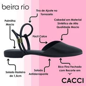 Mule Feminino Rasteiro Slingback Estilo Bico Fino Beira Rio - 36 - Preto