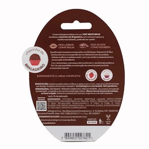 Multi Balm Vult 2 em 1 Boca & Olhos - Brigadeiro 6,5g Conheça o Multi Balm Vult 2 em 1 Boca & Olhos na irresistível cor Brigadeiro! Este bálsamo multifuncional é a escolha perfeita para quem busca pra