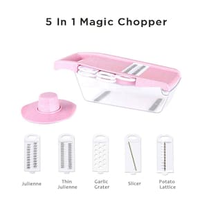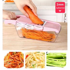 PACOTE INCLUI: 1X Base de corte 1X Protetor de mão 1X Caixa armazenadora 1X Descascador 5X Lâminas de corte Que tal economizar algumas horas do dia para você? Fatie verduras e legumes até 25X mais rápido e sem deixar sua cozinha bagunçada Este fabuloso fatiador de vegetais feito de aço inoxidável de grau alimentício e plástico ABS, oferece todas as funcionalidades de vários aparelhos com lâminas bastante afiadas, capazes de cortar quaisquer tipos de vegetais, ralar queijo, cortar batata, entre outros. Marca: COOKING UTENSIL SETS
