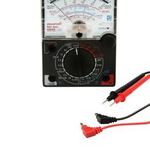 Multímetro Analógico Ft360 Brasfort Multímetro Analógico FT360 hobby. Display:Analógico Ilumi/Barra Graf.:Não Tensão DC:100mV/500mV/2,5V/10V/50V/250V/1000V Tensão AC:10V/50V/250V/1000V Corrente DC:50A/2,5mA/250mA Resistência:x1/x10/x1k/x10k Ohms Temperatura:Não possui Capacitância:Não possui Frequência:Não possui Duty Cycle:Não possui Teste Continuidade:Sim (C/D) Auto Desligamento:Não possui Mudança de Faixa:Não possui Precisão Básica:4% + 1 Categoria:Residencial/Hobby Dimensões:100 x 150 x 30mm Pesquisa:multimetro|analogico|ft-360|ft 360|ft360 Ean: 7898094335213