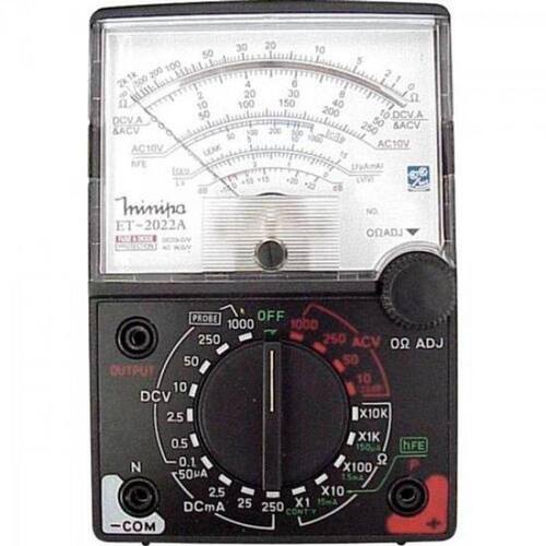 Multímetro Analógico Minipa Et-2022b O Multímetro Analógico Minipa ET-2022B é um instrumento analógico portátil da linha hobby. Sistema de suspensão do galvanômetro tipo mancal e sensibilidade de 20kOhms/V, que realiza medidas de tensão DC e AC, corrente DC, resistência e decibéis, além de testes para ganho e fuga de corrente para transistores. Capacitância:Não possui Frequência:Não possui Duty Cycle:Não possui Teste Continuidade:Não possui Auto Desligamento:Não possui Mudança de Faixa:Manual Precisão Básica:4% Categoria:Residencial/Hobby Dimensões:148 x 100 x 35mm Display:Analógico Ilumi/Barra Graf.:Não Tensão DC:0,1V/0,5V/2,5V/10V/50V/250V/1000V Tensão AC:10V/50V/250V/1000V Corrente DC:50A/2,5mA/25mA/250A Corrente AC:Não possui Resistência:2k/20k/2M/20M Ohms Temperatura:Não possui Pesquisa:multimetro|analogico|et|2022b|et-2022b|et2022b|minipa| - Sensibilidade DC 20kOhms/V; - Sensibilidade AC 9kOhms/V; - Teste de fuga de Transistores; - Decibel de -10 a + 62 dB; - Possui Teste Iceo; - Alimentação 2 x 1,5 V (AA)/1 x 9V; Acessórios: - Par de Pontas de Prova; - Manual de Instruções; - 1 Bateria. O Multímetro Analógico Minipa ET-2022B é um instrumento analógico portátil da linha hobby. Sistema de suspensão do galvanômetro tipo mancal e sensibilidade de 20kOhms/V, que realiza medidas de tensão DC e AC, corrente DC, resistência e decibéis, além de testes para ganho e fuga de corrente para transistores. Capacitância:Não possui Frequência:Não possui Duty Cycle:Não possui Teste Continuidade:Não possui Auto Desligamento:Não possui Mudança de Faixa:Manual Precisão Básica:4% Categoria:Residencial/Hobby Dimensões:148 x 100 x 35mm Display:Analógico Ilumi/Barra Graf.:Não Tensão DC:0,1V/0,5V/2,5V/10V/50V/250V/1000V Tensão AC:10V/50V/250V/1000V Corrente DC:50A/2,5mA/25mA/250A Corrente AC:Não possui Resistência:2k/20k/2M/20M Ohms Temperatura:Não possui Pesquisa:multimetro|analogico|et|2022b|et-2022b|et2022b|minipa| - Sensibilidade DC 20kOhms/V; - Sensibilidade AC 9kOhms/V; - Teste de fuga de Transistores; - Decibel de -10 a + 62 dB; - Possui Teste Iceo; - Alimentação 2 x 1,5 V (AA)/1 x 9V;