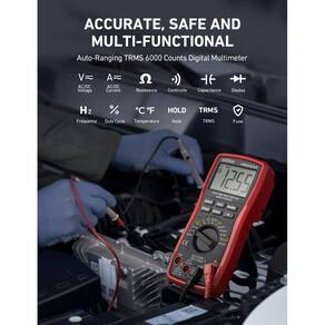 O multímetro AstroAI True RMS foi projetado para ser utilizado com segurança e precisão por profissionais em um ambiente comercial ou DIY de fim de semana que precisam de um pouco mais de utilidade de energia de seu multímetro digital padrão. É fácil e seguro de operar com recursos avançados construídos para medir aparentemente tudo. Execute testes em diodos e transistores enquanto é capaz de medir tensão, corrente, resistência, continuidade, capacitância e frequência, tudo em um dispositivo. - Multímetro digital versátil – mede com precisão a corrente CA/CC, tensão CA/CC, capacitância, frequência, ciclo de trabalho, resistência, diodo, continuidade e temperatura. - Design atencioso – suporte de retenção de dados, tela LCD retroiluminada, desligamento automático e suporte facilitam o processo de medições. O nível profissional se reflete em alguns recursos, incluindo capacidade de alcance automático e True RMS para medir corrente CA e tensão. - Adequado para muitas ocasiões – Este multímetro é um parceiro de ouro para ajudar a solucionar uma variedade de problemas elétricos automotivos e domésticos com segurança e precisão. - Garanta a segurança - O fusível duplo de cerâmica é antiqueima e protege contra sobrecarga, e será mais seguro e confiável; os tubos de fusíveis de cerâmica à prova de explosão F600mA/250V e F10A/250V podem proteger o multímetro de forma eficaz. - Dicas adicionais - tire a tampa antes de usar os cabos de teste. Verifique o manual para obter mais informações de uso.