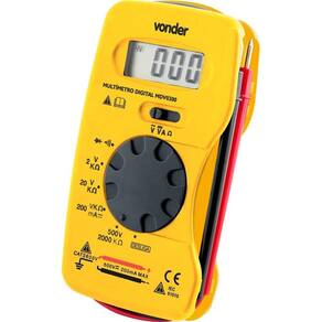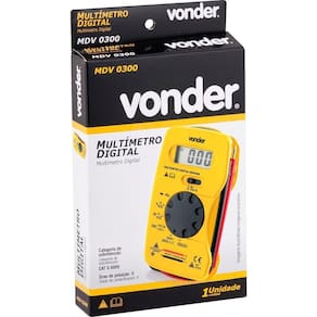 Multímetro Digital AComdc 200-500 Volts Mdv0300 Vonder Conteúdo da embalagem 1 Multímetro digital composto por: 2 pontas de prova, 1 capa de proteção e 1 bateria (instalada) Aplicações e dicas de uso Indicado para realizar medidas de tensão AC e DC, corrente DC, resistência e teste de diodo Destaques e diferenciais Indicado para técnicos em eletrônica e eletrotécnica para identificação de defeitos em aparelhos eletrônicos, sendo muito utilizado devido a sua simplicidade de uso e portabilidade. Reúne em um único aparelho diversos instrumentos de medições elétricas. Compacto, é indicado para trabalhos em baixa tensão. Possui funções de voltímetro, amperímetro (corrente contínua 200 mA), ohmímetro e teste de continuidade. Produto: Multímetro Ean: 7893946237196