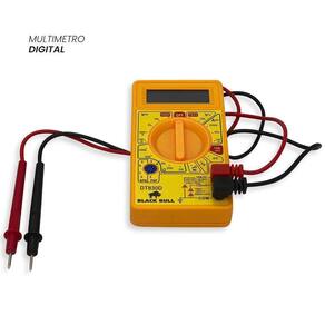 Multimetro digital com 1 par de ponta de teste. com o multímetro digital, você pode garantir precisão e facilidade na hora de medir circuitos eletrônicos, testar baterias e verificar a voltagem de aparelhos eletrodomésticos. Com display de fácil leitura, é possível medir corrente elétrica, voltagem e resistência de forma rápida e segura.Feito de materiais de qualidade, vai garantir segurança e leveza para transportá-lo para qualquer lugar que você vá. especificações técnicas: - display: 3 dígitos 2000 contagens .- indicação de sobre-faixa: mostra apenas o dígito mais significativo 1 .- temperatura de operação: 0c a 50c, rh 70%.- temperatura de armazenamento: -20c a 60c, rh 80%.- uso interno.- alimentação: 1 x 9v inclusa - dimensões: 126 a x 70 l x 24 p mm.- peso: aproximadamente 150g. tensão dc:- faixas: 200mv, 2000mv, 20v, 200v, 1000v- resolução: 100v, 1mv, 10mv, 100mv, 1v- precisão garantida: 200mv 0.25% 2d ; 2000mv 1000v 0.5% 2d - impedância de entrada: 1mw- proteção de sobrecarga: 220v ac rms para faixa 200mv; 1000v dc / 750v ac rms para outras faixas. tensão ac:- faixas: 200v, 750v- resolução: 100mv, 1v- precisão: 200v 750v 1.2% 10d - impedância de entrada: 1mw- resposta em frequência: 45hz a 450hz- proteção de sobrecarga: 1000v dc / 750v ac rms corrente dc:- faixas: 200a, 2000a, 20ma, 200ma, 10a- resolução: 0.1a, 1a, 10a, 100a, 10ma- precisão: 200a 20ma 1% 2d ; 200ma 1.2% 2d ; 10a 2.0% 4d .- proteção de sobrecarga: fusível de ação rápida 0.2a/250v para entrada ma; sem fusível para entrada 10a 10a máximo por 15 segundos . resistência:- faixas: 200w, 2000w, 20kw, 200kw, 2000kw- resolução: 0.1w, 1w, 10w, 100w, 1kw- precisão: 200w 200kw 0.8% 2d ; 2000kw 1.0% 2d - tensão de circuito aberto: 2.8v dc máximo - proteção de sobrecarga: 220v rms máximo 10s diodo:- faixa: diodo- indicação: queda de tensão aproximada sobre o diodo- condição de teste: corrente direta aproximada de 1ma dc- tensão reversa aproximada de 2.8v dc- proteção de sobrecarga: 220v rms máximo 10 segundos teste de hfe de transistor:- faixa: 0 1000- ib: 10a- vce: 2.8v dc especificações:material: plástico e açodimensões: -multímetro: comprimento: 13cm x larg.: 7 cm-ponta de teste: comprimento: 70cmpeso: aprox. 105g contém:01 multímetro digital com 01 par de ponta de teste