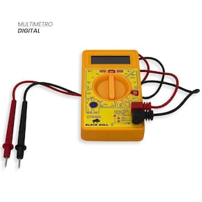 Multimetro Digital com 1 Par de Ponta de Teste. Com o Multímetro Digital, você pode garantir precisão e facilidade na hora de medir circuitos eletrônicos, testar baterias e verificar a voltagem de aparelhos eletrodomésticos. Com display de fácil leitura, é possível medir corrente elétrica, voltagem e resistência de forma rápida e segura.Feito de materiais de qualidade, vai garantir segurança e leveza para transportá-lo para qualquer lugar que você vá. ESPECIFICAÇÕES TÉCNICAS: - Display: 3 Dígitos (2000 Contagens).- Indicação de Sobre-faixa: Mostra apenas o dígito mais significativo (1).- Temperatura de Operação: 0C a 50C, RH< 70%.- Temperatura de Armazenamento: -20C a 60C, RH< 80%.- Uso Interno.- Alimentação: 1 x 9V (Inclusa)- Dimensões: 126(A) x 70(L) x 24(P)mm.- Peso: Aproximadamente 150g. Tensão DC:- Faixas: 200mV, 2000mV, 20V, 200V, 1000V- Resolução: 100V, 1mV, 10mV, 100mV, 1V- Precisão garantida: 200mV (0.25% 2D); 2000mV ~ 1000V (0.5% 2D)- Impedância de Entrada: 1MW- Proteção de Sobrecarga: 220V AC RMS para faixa 200mV; 1000V DC / 750V AC RMS para outras faixas. Tensão AC:- Faixas: 200V, 750V- Resolução: 100mV, 1V- Precisão: 200V ~ 750V (1.2% 10D)- Impedância de Entrada: 1MW- Resposta em Frequência: 45Hz a 450Hz- Proteção de Sobrecarga: 1000V DC / 750V AC RMS Corrente DC:- Faixas: 200A, 2000A, 20mA, 200mA, 10A- Resolução: 0.1A, 1A, 10A, 100A, 10mA- Precisão: 200A ~ 20mA (1% 2D); 200mA (1.2% 2D); 10A (2.0% 4D).- Proteção de Sobrecarga: Fusível de ação rápida 0.2A/250V para entrada mA; sem Fusível para Entrada 10A (10A máximo por 15 segundos). Resistência:- Faixas: 200W, 2000W, 20kW, 200kW, 2000kW- Resolução: 0.1W, 1W, 10W, 100W, 1kW- Precisão: 200W ~ 200kW (0.8% 2D); 2000kW (1.0% 2D)- Tensão de Circuito Aberto: 2.8V DC (máximo)- Proteção de Sobrecarga: 220V RMS (máximo 10s) Diodo:- Faixa: Diodo- Indicação: Queda de tensão aproximada sobre o diodo- Condição de teste: Corrente direta aproximada de 1mA DC- Tensão reversa aproximada de 2.8V DC- Proteção de sobrecarga: 220V RMS (máximo 10 segundos) Teste de hFE de transistor:- Faixa: 0 ~ 1000- Ib: 10A- Vce: 2.8V DC ESPECIFICAÇÕES: Material: Plástico e Aço Dimensões: -Multímetro: Comprimento: 13cm x Larg.: 7 cm -Ponta de teste: Comprimento: 70cm Peso: Aprox. 105g CONTÉM: 01 MULTÍMETRO DIGITAL COM 01 PAR DE PONTA DE TESTE