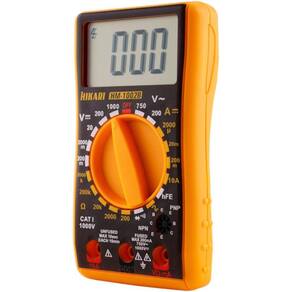 Multímetro Digital Hm-1002b O Multímetro Digital modelo HM-1002B, categoria de segurança CAT I 1000V, se destaca pelas medidas de Tensão DC/AC, Corrente DC, Resistência e pelos testes de Diodo e Continuidade. Como característica adicional apresenta as funções: Gerador de Onda Quadrada, Teste de hFE e Indicador de Bateria Fraca, além do seu amplo display de 2,3. O Multímetro Digital HM-1002B pode ser utilizado em bancadas para medir circuitos eletrônicos e ambientes monofásicos protegidos. Contagem Máxima do Display: 2000 contagens (3 Dígitos); Display Grande: Fácil visualização 2.3. Taxa de Amostragem: aproximadamente 2 vezes por segundo; Indicação de Polaridade: Automática; Indicação de Sobrefaixa: é mostrado no display; Indicação de bateria fraca: Símbolo é mostrado no display; Mudança de Faixa: Manual; Teste de Continuidade, Diodo, hFE de Transistor; Gerador de Onda Quadrada de 50 Hz; Tensão de Saída: Aproximadamente: 5Vpp; Impedância: Aproximadamente: 50 kO. Altitude de Operação: 2000m Ambiente de Operação: 0C a 40C, RH<80%; Ambiente de Armazenamento: -10C a 60C, RH<70%; Segurança / Conformidade: IEC/EM 61010-1 Sobretensão e Dupla Isolação, CAT I 1000V; Grau de poluição: 2; Proteção por Fusível de 500mA/250V para o Terminal de Entrada mA PPTC fusível de Auto Restauração; Tipo de Alimentação: 1 x 9V (Bateria NEDA 1604 ou 6F22ou 006P); Ean: 7899810415615