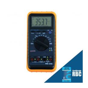 MULTIMETRO MOD. MD-340 COM CERTIFICADO DE CALIBRAÇÃO ACREDITADA RBC DESCRIÇÂO: Multimetro mod. md-340, incluso certificado de calibração acreditada rbc DESCRIÇÃO CERTIFICADO DE CALIBRAÇÃO: Certificado de Calibração RBC P/ Multímetro em Resistência, Corrente AC/DC e Tensão AC/DC sob os Procedimentos PCI-022/039/040/014 em Pontos bem Distribuídos Pelas Faixas de Medição Calibração acreditada RBC Procedência: Laboratório de Calibração Instrutherm ESPECIFICAÇÔES TÈCNICAS: Display: LCD de 3¾ dígitos com barra gráfica Escala: Tensão AC: Escala Resolução Precisão 3,26V 1mV ±0,8% de leitura ± 3 dígitos 32,6V 10mV 326V 0,1V 750V 1V Impedância de entrada: 10? Alcance de frequência: 40 à 1000Hz para 3,26V Tensão DC Escala Resolução Precisão 326mV 0,1mV ±0,5% de leitura ± 2 dígitos 3,26V1mV 32,6V 10mV ±0,3% de leitura ± 2 dígitos 326V0,1V 1000V 1V ±0,5% de leitura ± 2 dígitos Impedância de entrada: 10?, mais que 100M? para escala de 326mV Corrente AC Escala Resolução Precisão 326µA0,1µA 3260µA 1µA ±1,5% de leitura ± 5 dígitos 32,6mA10µA 326mA0,1mA 10A 10mA ±3,0% de leitura ± 7 dígitos Proteção contra sobrecarga: Fusível de 0,3A/250V e 10A/250V Corrente DC Escala Resolução Precisão 326µA0,1µA 3260µA 1µA ±1,2% de leitura ± 3 dígitos 32,6mA10µA 326mA0,1mA 10A 10mA ±2,0% de leitura ± 5 dígitos Proteção contra sobrecarga: Fusível de 0,3A/230V e 10A/250V Resistência Escala Resolução Precisão 326?0,1? 3,26k? 1? ±0,8% de leitura ± 3 dígitos 32,6k?10? 326k? 100? ±0,8% de leitura ± 1 dígito 3,26M?1k? 32,6M? 10k? ±1,2% de leitura ± 2 dígitos Capacitância Escala Resolução Precisão 326nF 0,1nF ±3,0% de leitura ± 5 dígitos 32,6µF 10nF Frequência Escala Resolução Precisão 32,6kHz 10Hz ±1,2% de leitura ± 3 dígitos 200kHz 100Hz ±2,5% de leitura ± 3 dígitos Sensibilidade: 200mV até 50kHz, 1V de 50kHz à 200kHz Desligamento automático Indicação de polaridade Indicação de bateria fraca Indicação de sobre escala Temperatura de operação: 0 a 40ºC Alimentação: Bateria 9V Dimensões: 189 x 91 x 31,5mm Peso: Aprox. 310g CAT III 600V ITENS FORNECIDOS: Multímetro digital MD-240 Ponta de prova Bateria 9V Capa protetora (holster) Manual de Instruções Certificado de calibração acreditada rbc