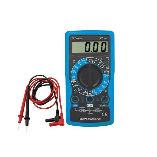 Multímetro digital portátil ac/dc et-1002 minipa Características da ferramenta: multímetro de baixo custo e dimensões reduzidas com diversos recursos para aplicações em ambientes monofásicos, bancadas, hobby. Faz medições de tensão dc e ac, corrente dc, resistência, teste de diodo e transistor Dados técnicos: - display: 3 dígitos (2000 contagens); - indicação de sobrefaixa: mostra apenas o dígito mais significativo (1); - mudança de faixa: manual; - indicador de bateria fraca: é mostrado no display; - taxa de amostragem: aproximadamente 2 3 vezes por segundo; - ambiente de operação: 0c a 40c, rh < 75%; - ambiente de armazenamento: -10c a 50c, rh < 85%; - altitude de operação: até 2000m; - uso interno; - linha hobby; - duração da bateria: aprox. 200h; - alimentação: 1 x 9v (neda1604, 6f22 ou 006p); - dimensões: 128(a) x 66(l) x 27(p)mm; -peso: aprox. 130g (incluindo bateria); Acompanha: 1un. Multímetro digital et-1002 minipa 1un. Manual de instruções 1un. Pontas de prova (par) 1un. Bateria (instalada) Imagem meramente ilustrativa Garantia: 3 meses oferecido pelo fabricante (contra defeitos de fabricação); Especificações: código: 119941 modelo: et-1002 código ean: 7898112601467
