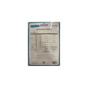Multímetro Digital Portátil Profissional IT-BLUE LE-1945O multímetro digital é um equipamento delicado e requer o manuseio de um operador habilitado tecnicamente, caso contrário, poderá ser danificado. Portanto não serão considerados, mesmo dentro do prazo de validade da garantia, os defeitos causados pelo mau uso.Especificações- Uso Interno.- Alimentação: 1 x 9V Inclusa - Dimensões: 126 A x 70 L x 24 P mm.- Peso: Aproximadamente 150g.Dados Técnicos- Dimensões: 126 A x 70 L x 24 P mm.- Peso: Aproximadamente 150g.Itens incluso:1 Multímetro Digital1 Par Ponta de teste